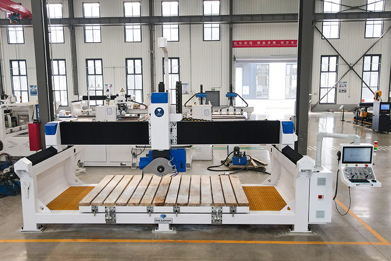 5+1 數(shù)控橋切鋸能夠以任何所需的角度和形狀對(duì)花崗巖、大理石、人造石、板巖和各種其他石材進(jìn)行切割和雕刻。本機(jī)采用的藍(lán)象數(shù)控系統(tǒng)。